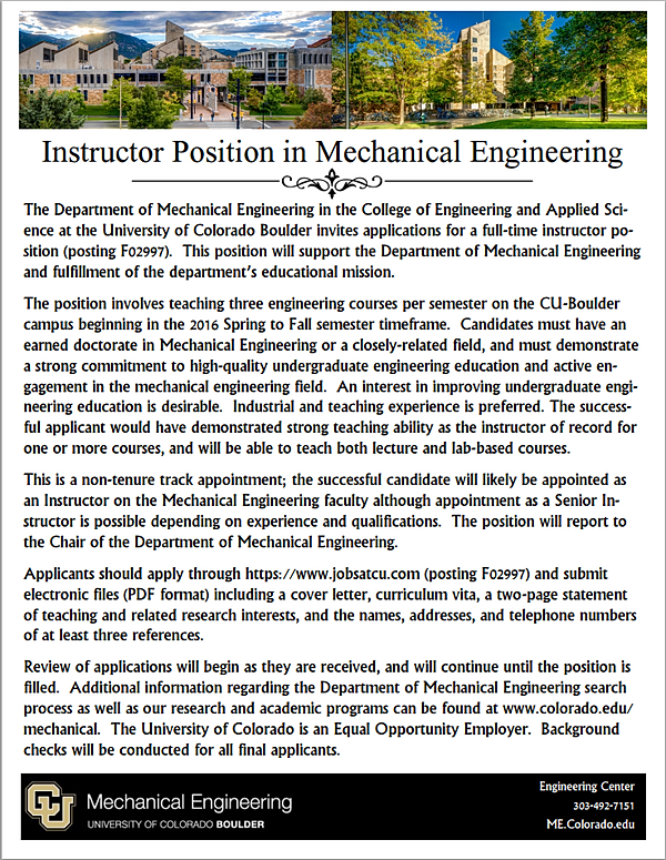 Institution University of Colorado Boulder diversity and equality in education and employment. The University of Colorado Boulder conducts background checks for all final applicants. Contact Information Please reference Academickeys in your cover letter when ... Fetch Content